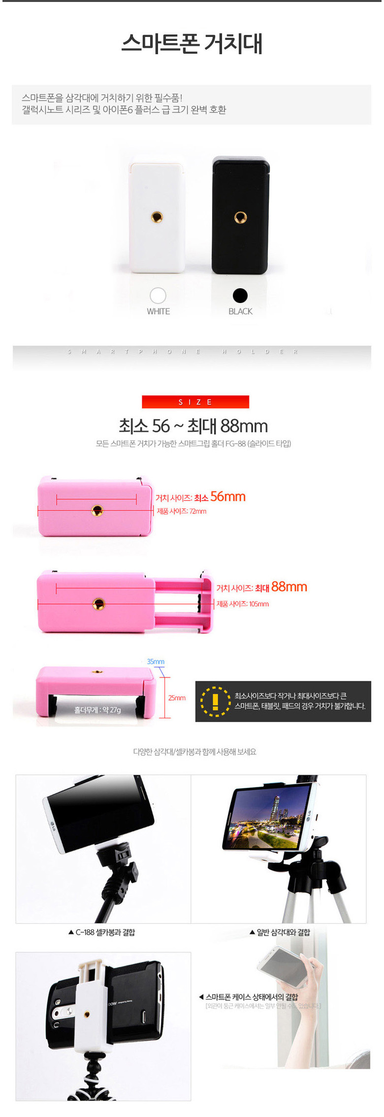 카메라 삼각대 스마트폰 홀더 세트 홀더화이트
